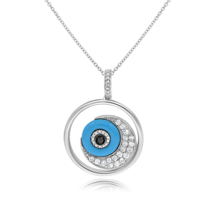 1.00ct Turquoise, 0.32ct White and 0.05ct Black Diamond Pendant set in 14KT White Gold / PD855