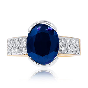 0.39ct Diamond and 5.20ct Sapphire Ring set in 14KT White and Yellow Gold / MB1023