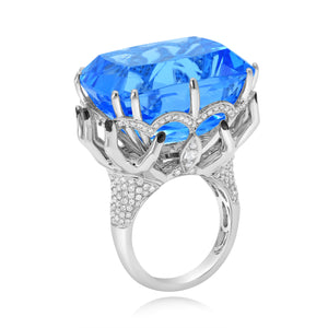 1.02ct Diamond and 1.38ct Blue Topaz Ring set in 18KT White Gold / R6808